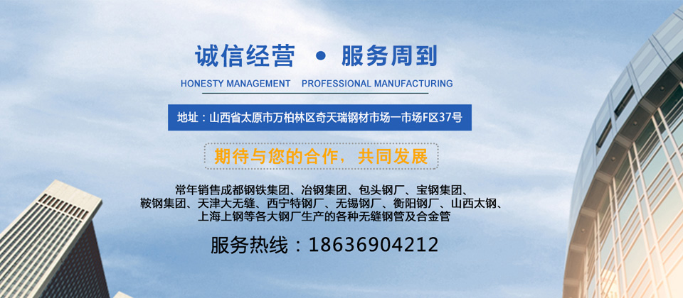 山西衡泰尚盈貿(mào)易有限責(zé)任公司是集生產(chǎn)加工經(jīng)營于一體的無縫鋼管、不銹鋼管、合金管、鍋爐管、液壓支柱管、方管、方矩管、不銹鋼板等的大型企業(yè),常年銷售成都鋼鐵集團(tuán)、冶鋼集團(tuán)、包頭鋼廠、寶鋼集團(tuán)、鞍鋼集團(tuán)、天津大無縫、西寧特鋼廠、無錫鋼廠、衡陽鋼廠、山西太鋼、上海上鋼等各大鋼廠生產(chǎn)的各種無縫鋼管及合金管。